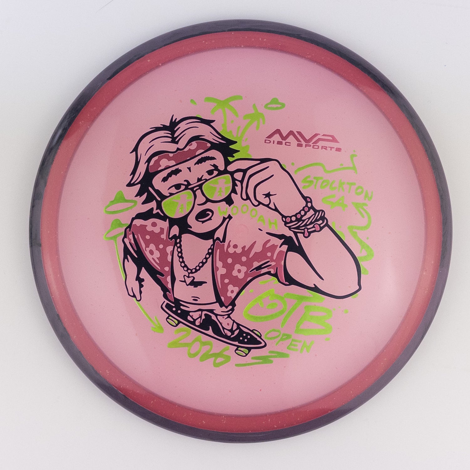 Don’t let something silly, like an alien abduction, spoil the vibes after you get the OTB Open Particle Proton Soft Hex on the course! Damian White brings his talents with a most excellent triple-foil stamp, perfect for the occasion.
