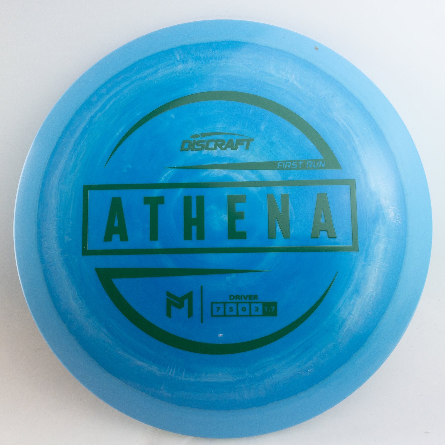 Introducing the First Run Athena, the sixth disc in the Paul McBeth lineup. This 7 speed driver is for control shots with a dependable fade. Similar shot shaping flight characteristics to the Anax with reliable over-stability.