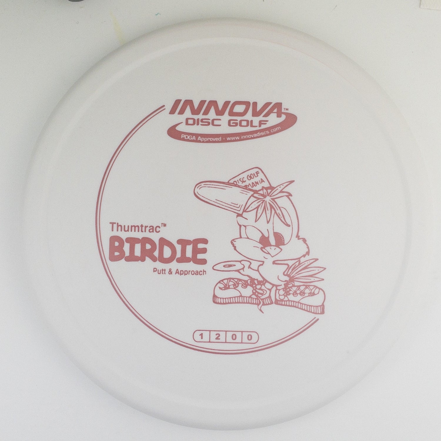 The Birdie is a slow, straight flyer with our Thumtrac™ grip for a sure release. It has great chain catching ability. Great for approach shots, as it flies straight and slow, start to finish. It is one of our best “go for it” discs as it doesn’t go far past the basket on misses, and stays put when it hits the ground. A good disc for those players making the conversion from flat edged disc sports: Catch, Ultimate, Freestyle, etc.