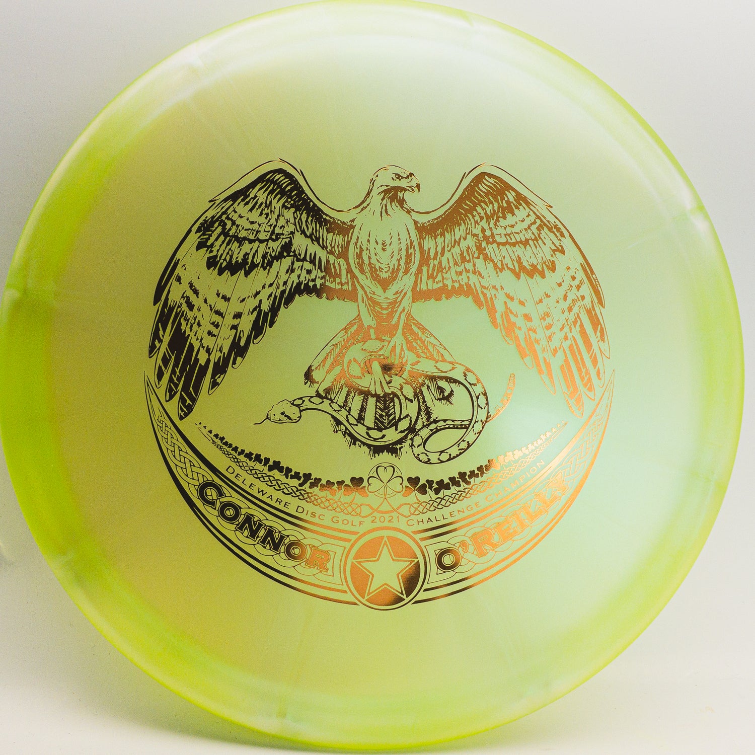 Connor O’Reilly Compass – The Compass is a great feeling mold and now you can have it in the Opto Chameleon Burst plastic and an amazing stamp supporting Connor O’Reilly. This will help support Connor during his 2022 Tour. The stamp commemorates Connor’s win last year at the Delaware Disc Golf Challenge where he put on a show and let people know he was here to stay! If you are looking for a midrange that stays extremely straight at all speeds then try a Compass. It has great torque resistance with minimal fade making it the perfect midrange for players of all skill levels. Help support Connor O’Reilly on tour with an Opto Chameleon Burst Compass today!