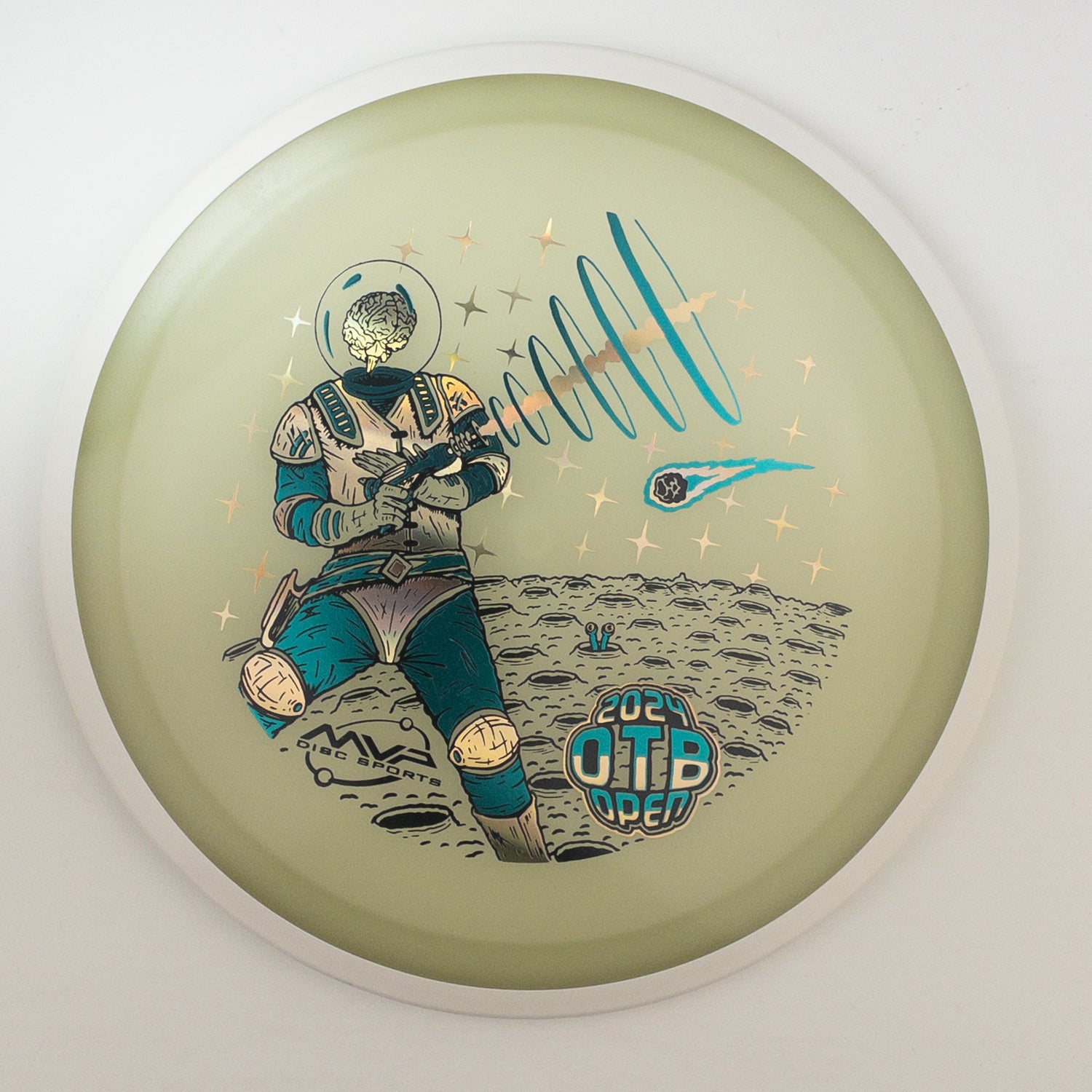 2024 OTB Open Fundraiser - “The world can only be grasped by action, not by contemplation. The hand is the cutting edge of the mind.” - Diane Arbus. Blasting off to a planet near you, the Eclipse Servo! Ripper Studios brings us an illustration showcasing that no matter the situation, the mind is one of our greatest tools. The Eclipse Servo is a dependable fairway driver with just a touch of fade to complement some turn - making it a great and reliable addition to anyone’s bag. Illuminate your mind and your disc golf game with the 2024 OTB Open Eclipse Servo**!