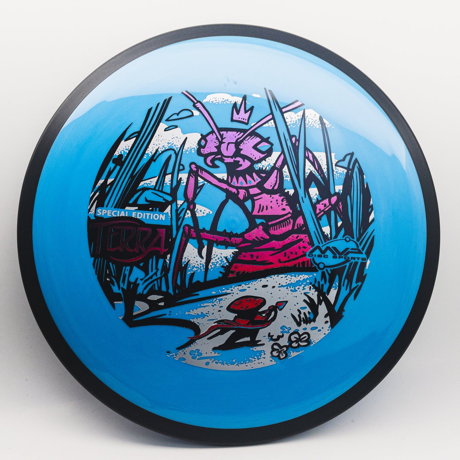 The rhythmic crash of 6 legs cutting through the field would almost be soothing if you didn’t know what it belonged to. As the final blades of grass part — steel yourself, warrior — the Ant Queen is here! Mike Inscho has done it again! He’s delivered on a stunning triple-foil rendition of the prelude to what is sure to be a battle not soon forgotten. Pairing the reliable flight of the Terra with art by Mike Inscho is an absolute royal flush for GYROnauts around the world — this SE is sure to be a conversation starter whether it’s in your bag or on your wall. Commemorate the release of the first driver in the James Conrad Line, grab the Neutron Terra SE today!